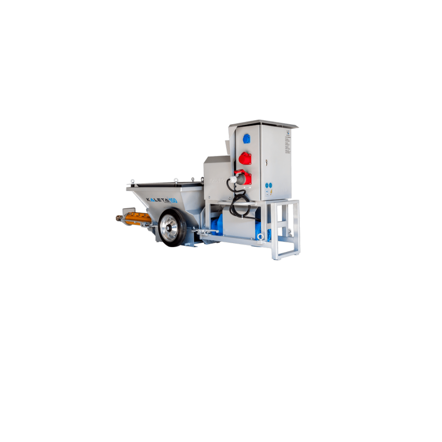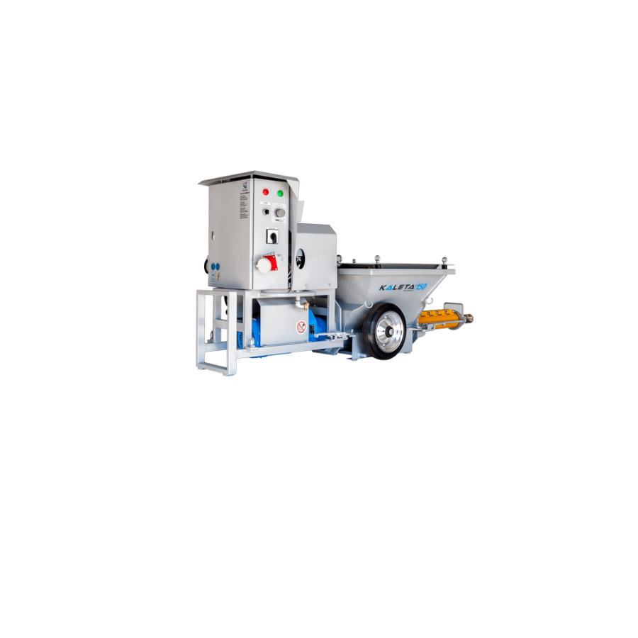 Штукатурная станция KALETA-150 предназначена для нанесения растворных смесей, приготовленных на строительной площадке, зернистостью до 6 мм (известково-цементных, известково-гипсовых и специальных смесей, а также самовыравнивающихся смесей для пола и самовыравнивающихся известково-цементных смесей для пола).