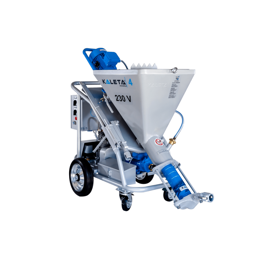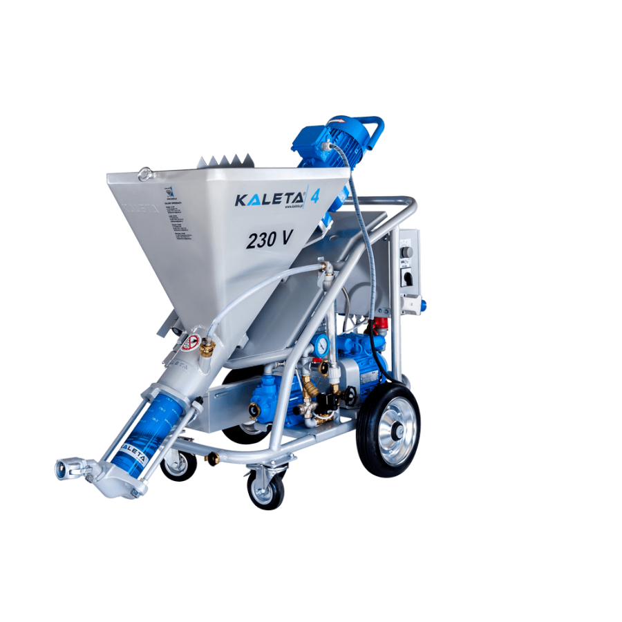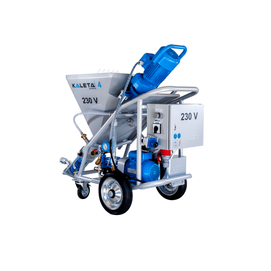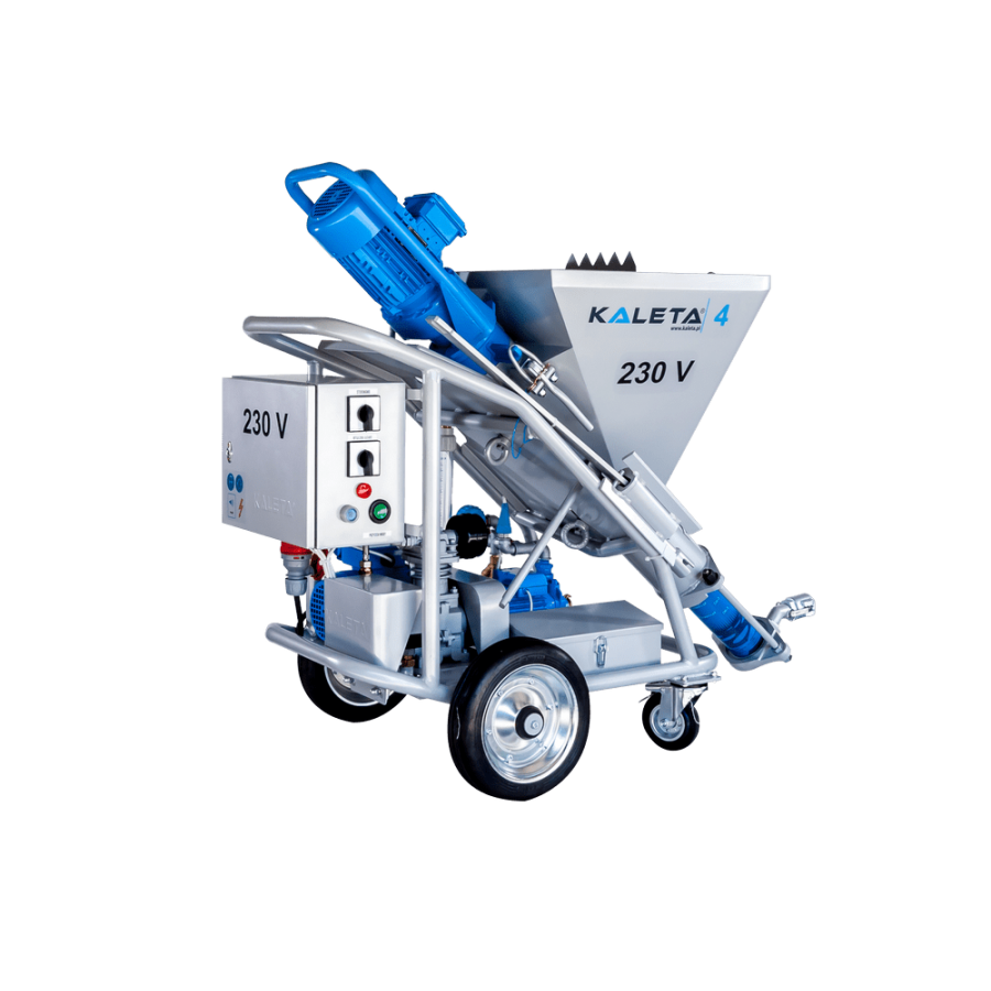 Штукатурная станция KALETA-4/230 с однофазным электропитанием 230В предназначена для нанесения машинной штукатурки (известково-цементных, известково-гипсовых и специальных смесей, а также самовыравнивающихся смесей для пола).